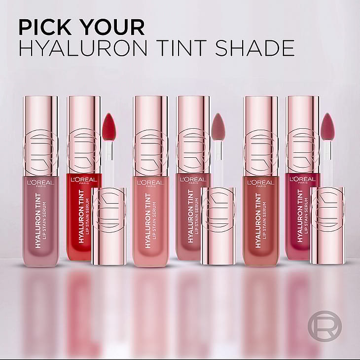 L'Oréal Paris Hyaluron Tint Lip Stain Serum kombinerer holdbarheden fra en lip stain med de fugtgivende egenskaber fra et serum. Den dobbeltvirkende formel, som er beriget med hyaluronsyre, giver 12 timers* vægtløs, levende farve og 60%** øjeblikkelig fugt for velplejede læber.