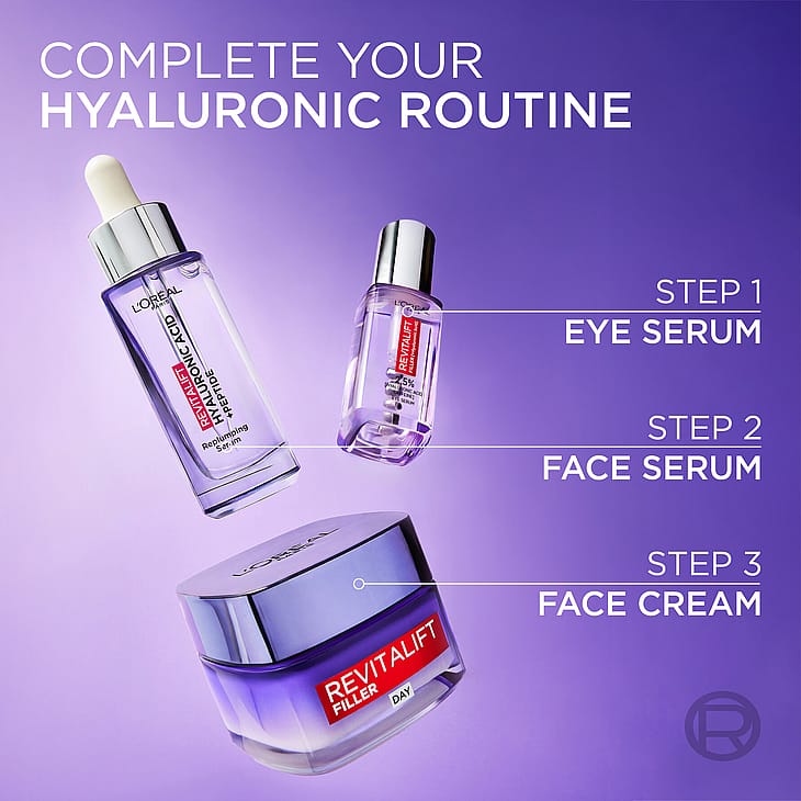 L'Oréal Paris Revitalift Filler 1,5% Hyaluronic Acid Serum er et fugtgivende anti-age-serum med 1,5 % hyaluronsyre til moden hud.