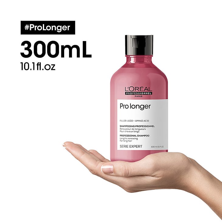 Drevet af patenteret FILLER-A100-teknologi og aminosyre er Serie Expert Pro Longer længdefornyende shampoo den perfekte behandling til hår, der lider af tynde spidser.
