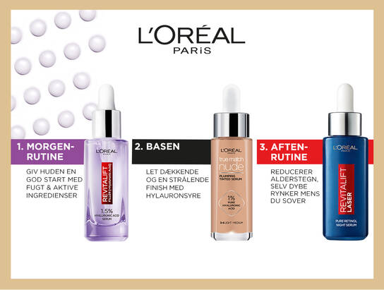 Vi har spurgt L'Oréal Paris, hvad nøglen til effektive hudplejerutiner og synlige resultatater er. Ifølge dem handler det om, at sørge for at ens individuelle rutiner fungerer sammen og supplerer hinanden. Stærke alene, men stærkere sammen, er deres motto. Derudover er det også vigtigt at tilføre huden de rette ingredienser og produkter på det rigtige tidspunkt.