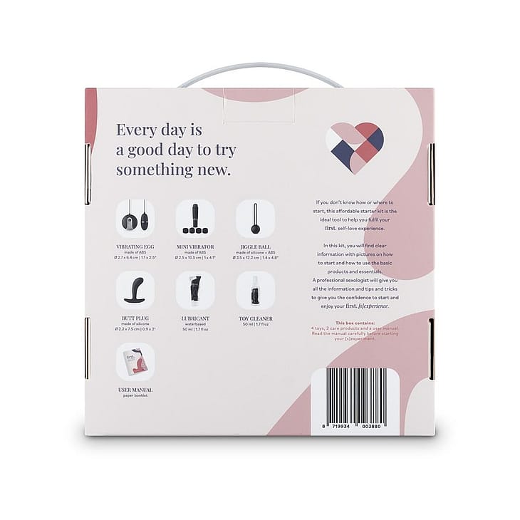 Den første. Self-Love [S]Experience Starter Set er den perfekte startpakke til kvinder, der er nysgerrige på at bruge forskellige former for legetøj, men som har lidt eller ingen erfaring. Men boksen er også en fin tilføjelse til par til en spændende aften i soveværelset.