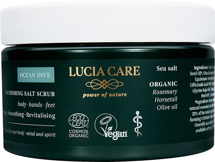 En ægte spa oplevelseSuper lækker body scrub, ligesom resten af produkterne fra Lucia Care, så føles denne scrub som en luksus spa oplevelse, dufter skønt og friskt og føles dejlig blid på huden. Efterlader huden blød og velplejet