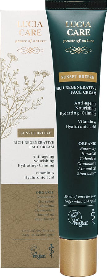 Rich Regenerative Face Cream er en intensiv nærende anti-age ansigtscreme til både dag og nat, som er sammensat af innovativ A-vitamin formel, to forskellige molekyler af hyaluronsyre, som fugter i dybden samt lægeurter, der stimulerer dannelsen af collagen i huden.