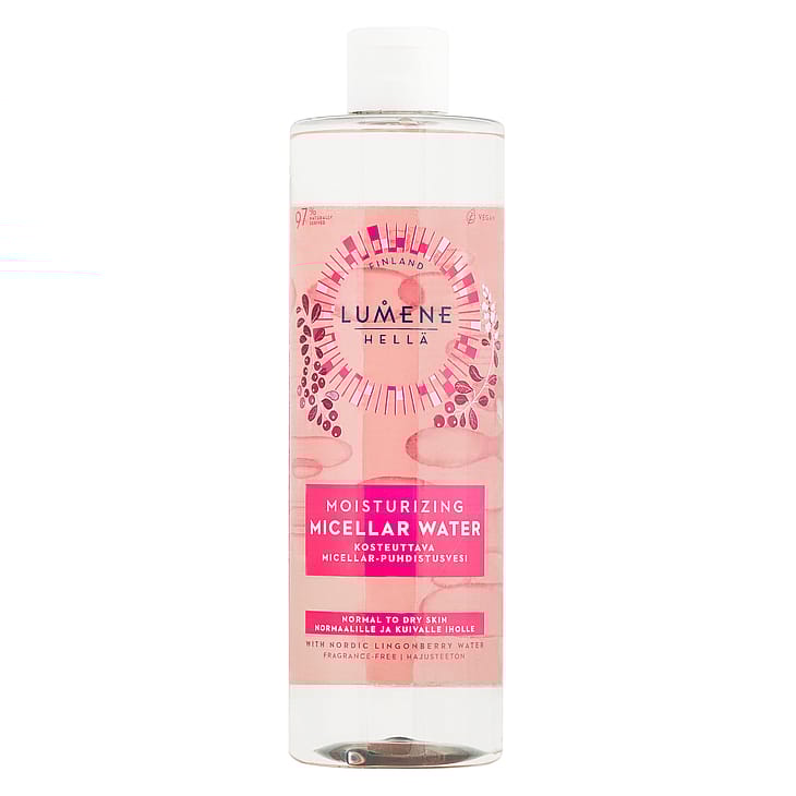 LUMENE Moisturizing Micellar Water til normal til tør hud renser skånsomt, men effektivt huden og fjerner makeup fra ansigt, øjne og læber i et enkelt trin.