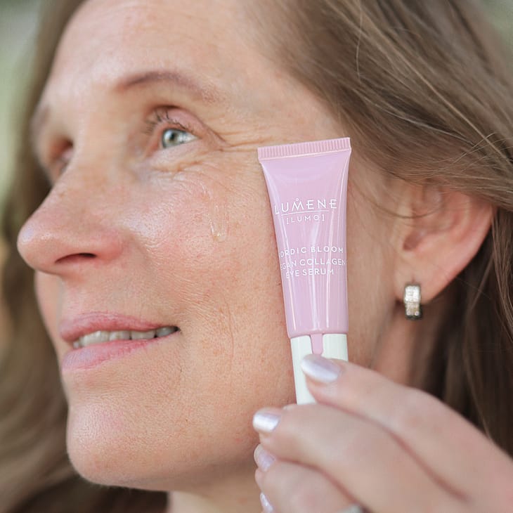 Lumene Nordic Bloom Vegan Collagen Eye Serum hjælper med at udglatte området under øjnene og genoprette hudens ungdommelige opspring.