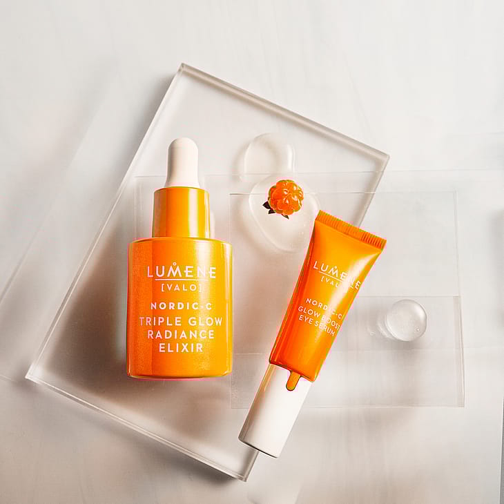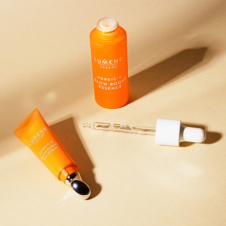 Lumene Nordic-C Glow Boost Eye Serum er duftfri, vegansk og formuleret med et højt niveau af genanvendte og vildt-fremstillede ingredienser.