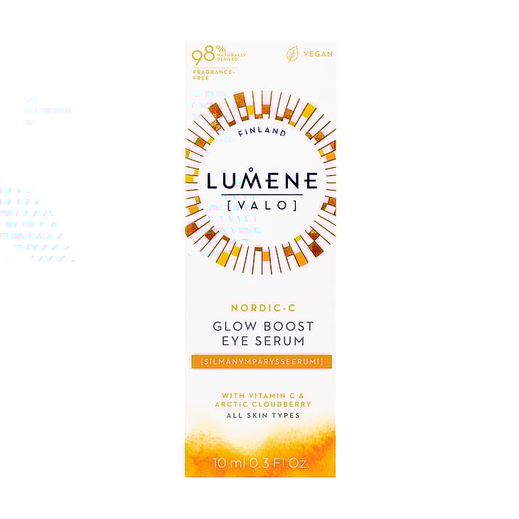 Lumene Nordic-C Glow Boost Eye Serum er et øjenserum designet til synligt at reducere udseendet af mørke rander og hydrere for at skabe et jævnere og lysere øjenområde.
