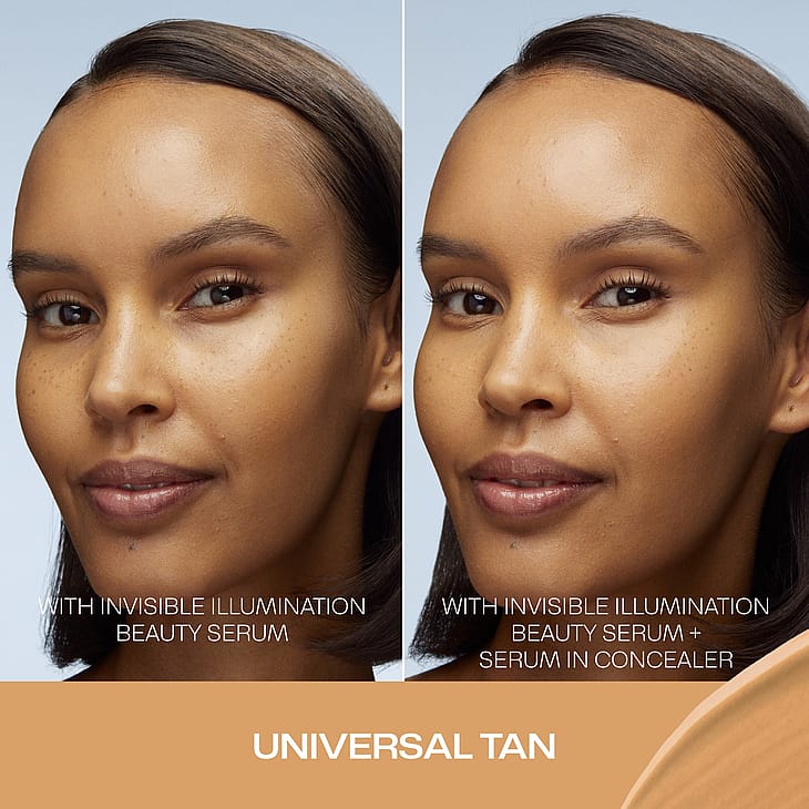 Invisible Illumination Serum in Concealer er en fugtende, opbyggelig concealer, som perfekt dækker mørke rande under øjnene, ujævnheder osv.