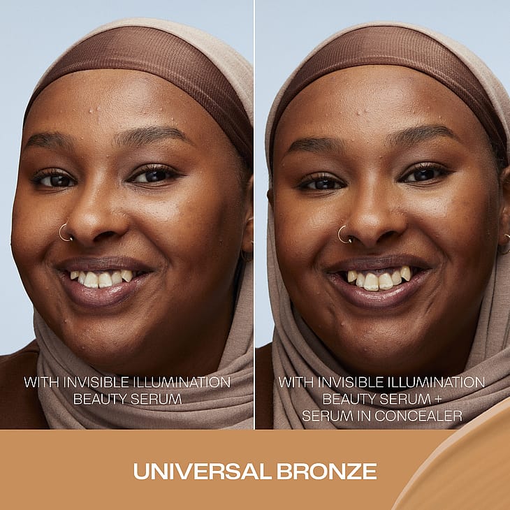 Invisible Illumination Serum in Concealer er en fugtende, opbyggelig concealer, som perfekt dækker mørke rande under øjnene, ujævnheder osv.