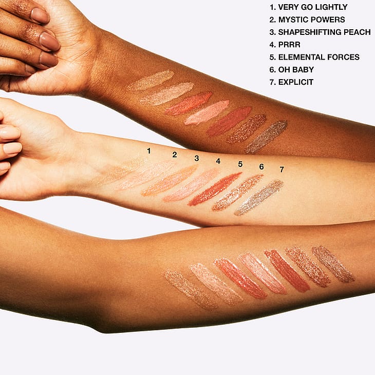 Hydrogenated Polyisobutene, Simmondsia Chinensis (Jojoba) Seed Oil, Octyldodecanol, Copernicia Cerifera (Carnauba) Wax\ Copernicia Cerifera Cera \Cire De Carnauba, Tocopheryl Acetate, Cocos Nucifera (Coconut) Oil, Orbignya Oleifera (Babassu) Seed Oil, Prunus Armeniaca (Apricot) Kernel Oil, Acrylates Copolymer, Alumina, Aluminum Calcium Sodium Silicate, Calcium Aluminum Borosilicate, Calcium Sodium Borosilicate, Silica, Synthetic Fluorphlogopite, Tin Oxide, Polyethylene Terephthalate, Propylene Carbonate, Disteardimonium Hectorite, Ethylhexyl Hydroxystearate, Vanillin, Phenoxyethanol, [+/- Mica, Titanium Dioxide (Ci 77891), Iron Oxides (Ci 77491), Iron Oxides (Ci 77492), Iron Oxides (Ci 77499), Bismuth Oxychloride (Ci 77163), Blue 1 Lake (Ci 42090), Bronze Powder (Ci 77400), Carmine (Ci 75470), Copper Powder (Ci 77400), Red 6 (Ci 15850), Red 6 Lake (Ci 15850), Red 7 Lake (Ci 15850), Red 21 Lake (Ci 45380), Red 28 Lake (Ci 45410), Red 30 Lake (Ci 73360), Red 33 Lake (Ci 17200), Yellow 5 (Ci 19140), Yellow 5 Lake (Ci 19140), Yellow 6 Lake (Ci 15985)]