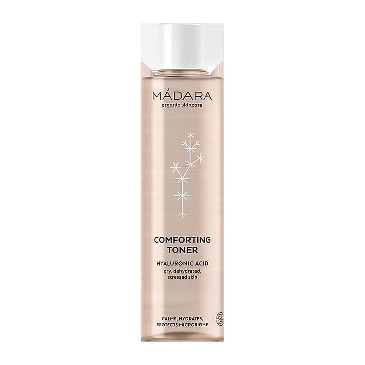 Comforting Toner. Fugtgivende og behagelig essens, der beroliger øjeblikkeligt følsom, tør og stram hud. Den pH-balancerende formel med beroligende blomstervand af kornblomst og rose, kamilleekstrakt og hudidentiske, naturlige fugtgivende ingredienser efterlader huden glat, frisk og fugtmættet med en dejlig blød fornemmelse. Forebygger hudirritation. Flasken er 100 % genbrug.