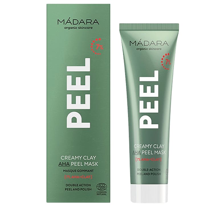 Peel Mask. Effektiv og næringsrig ler-maske med 7 % mælkesyre. Renser blidt hudens overflade, fjerner døde hudceller og renser porerne, så huden fremstår klarere, friskere og mere strålende.