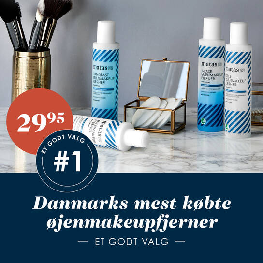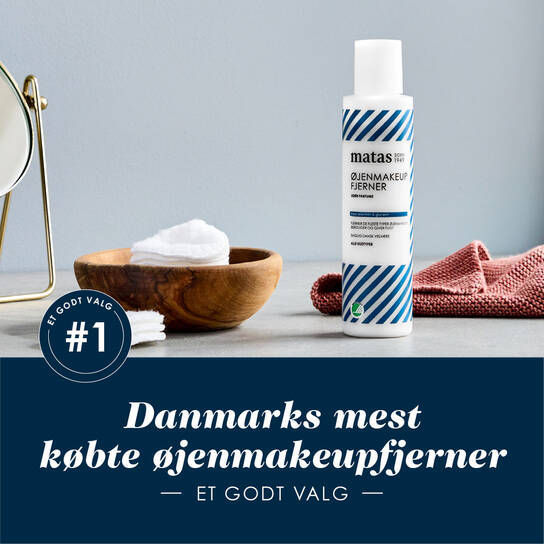 Matas Øjenmakeupfjerner er den mest købte i Danmark – og en vaskeægte Stribe-klassiker. Den virker, den er skånsom og både Svanemærket og parfumefri. Et rigtig godt valg!