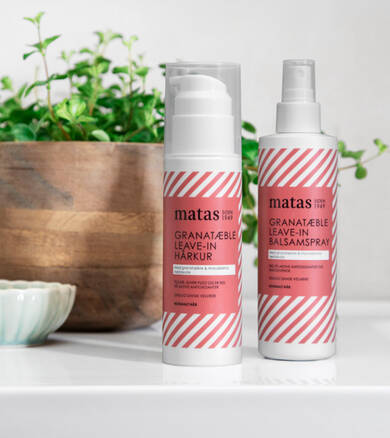 Granatæble-serien i Striberne udvides nu med to ekstra plejende hårplejeprodukter.