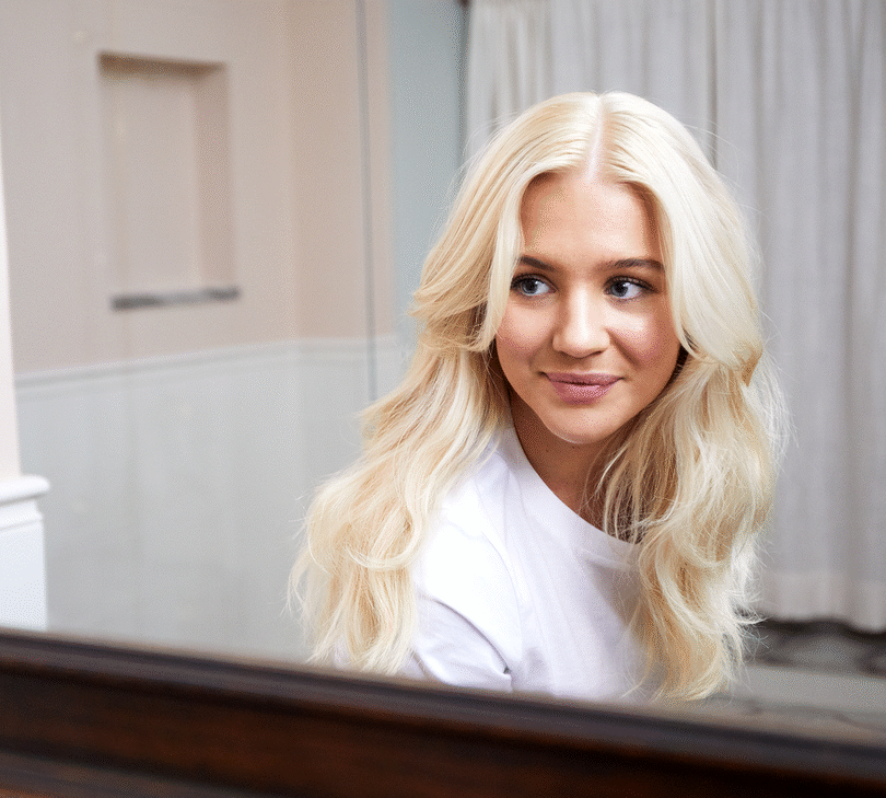 Trin 2: Tag de medfølgende plasthandsker på og bland produktet. Adskil den enkelte hårlok fra det øvrige hår ved at holde den ud fra hovedet. Påfør blandingen med den medfølgende pensel jævnt fra rod til spids, men lad ikke blandingen komme i kontakt med hud eller hovedbund. Vores tip: Undgå at blandingen kommer i kontakt med hovedbunden. Start i stedet påføringen i ca. en halv centimeters afstand fra hovedbunden. Dette vil også få udvoksninger til at se mere naturlige ud.