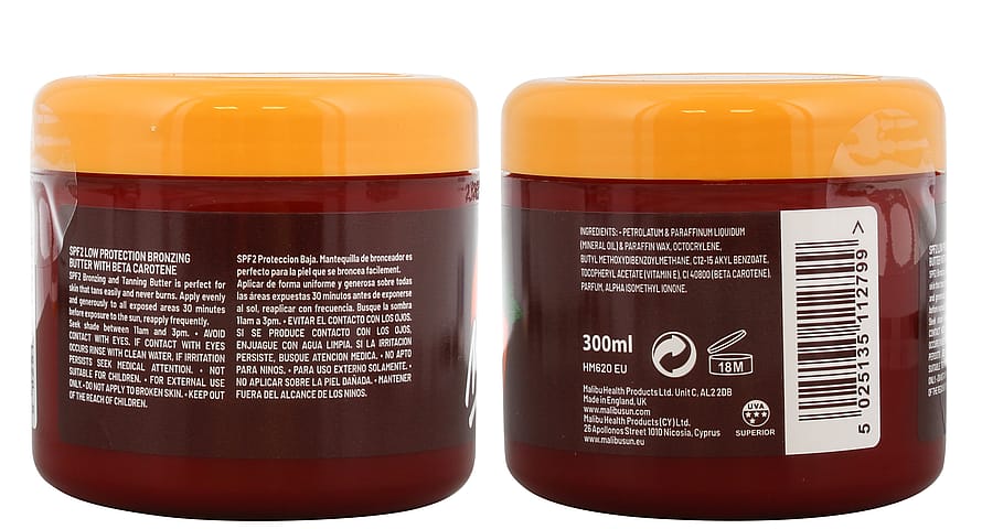 Malibu Fast Tanning Body Butter er specielt formuleret med betacaroten for at hjælpe hudens naturlige solbruningsproces ved at bringe hudens mørke pigment til overfladen.