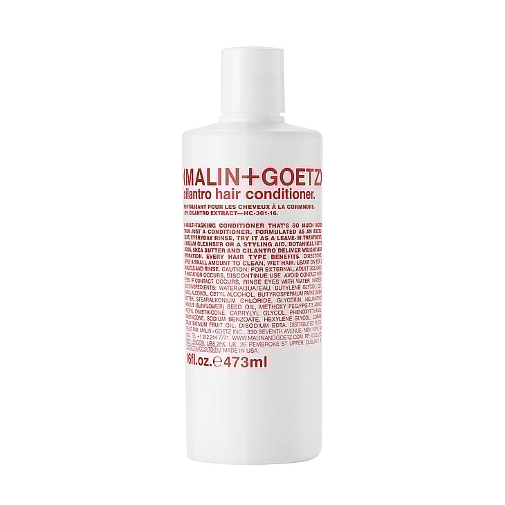 Malin+Goetz Cilantro Hair Conditioner fugter effektivt og pH-afbalancerer alle hår- og hovedbundstyper, i modsætning til traditionelt fedtende olie, der gør håret tungt og irriterer hovedbunden.
