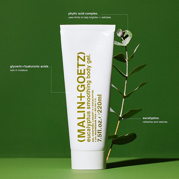 Malin+Goetz Eucalyptus Smoothing Body Gel er et en multi-serum formuleret med en transformativ vanddråbetekstur for at bringe hudtekstur, glathed + barrierefunktion til næste niveau. revitaliserende eukalyptus køler og genopretter, så din krop ser ud og føles lige så godt som dit ansigt.