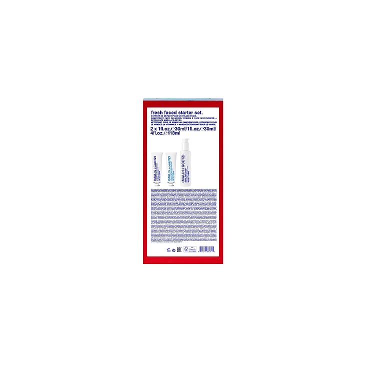 Sættet inkluderer: + Detox Face Mask. 118 ml. + Grapefruit Face Cleanser. 30 ml. + Vitamin E Face Moisturizer. 30 ml.