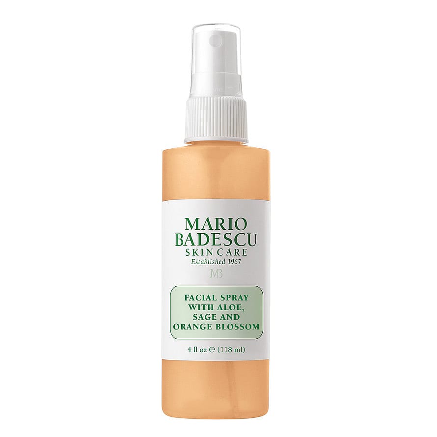Mario Badescu Facial Spray With Aloe, Sage & Orange Blossom er en fugtende og lysnende ansigtsspray. Beriget med forfriskende salvie og appelsinblomstvand hjælper denne ansigtsspray med at forbedre hudens klarhed, og giver en dugfrisk, jævn teint.