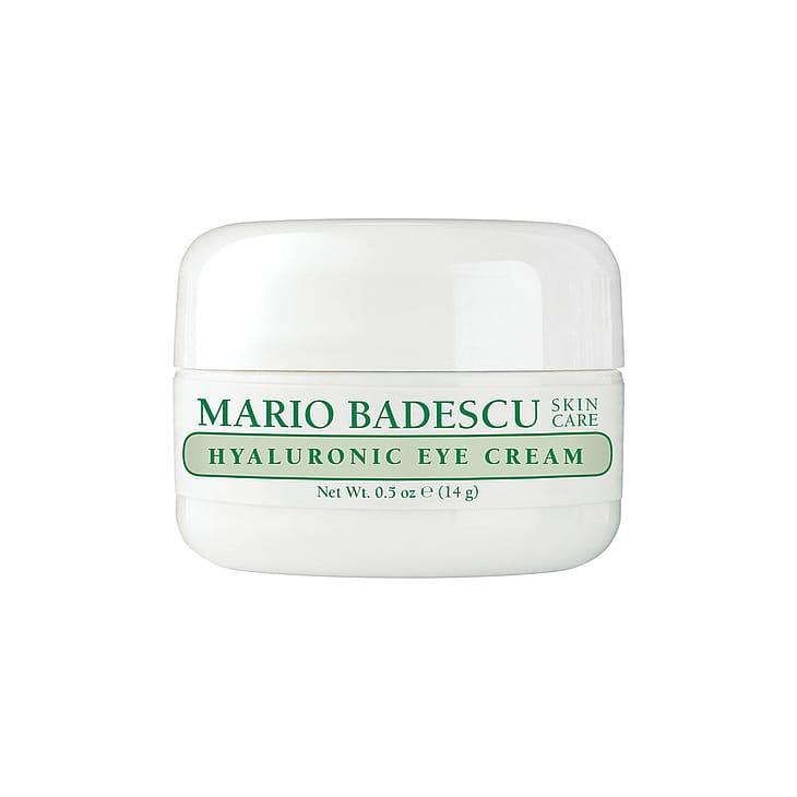 Mario Badescu Hyaluronic Eye Cream er mærkets bedst sælgende øjencreme. Hyaluronsyre og saflorfrøolie er kombineret i en letabsorberende formel, som glatter fine linjer og fugter. Aloe vera beroliger området under øjet, hvilket gør denne øjencreme ideel til daglig brug under makeup.