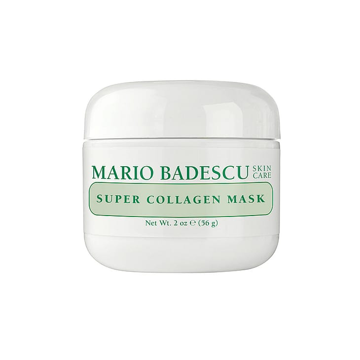 Mario Badescu Super Collagen Mask indeholder kollagen, som reducerer fine linjer, og giver en mere ungdommelig udseende hud. Derudover indeholder den lindrende havregryn, og kaolin, som trækker urenheder ud af huden.