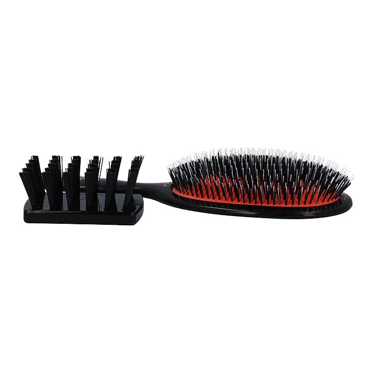 En Mason Pearson hårbørste er mere end en børste – det er en investering i et velplejet hår og en sundere hovedbund.Vigtigste fordele!- Effektiv udredning og glathed – Nylonbørsterne løsner skånsomt filtre og sammenfiltringer, mens vildsvinehårene fordeler hovedbundens naturlige olier for at reducere krus og brud på håret.
