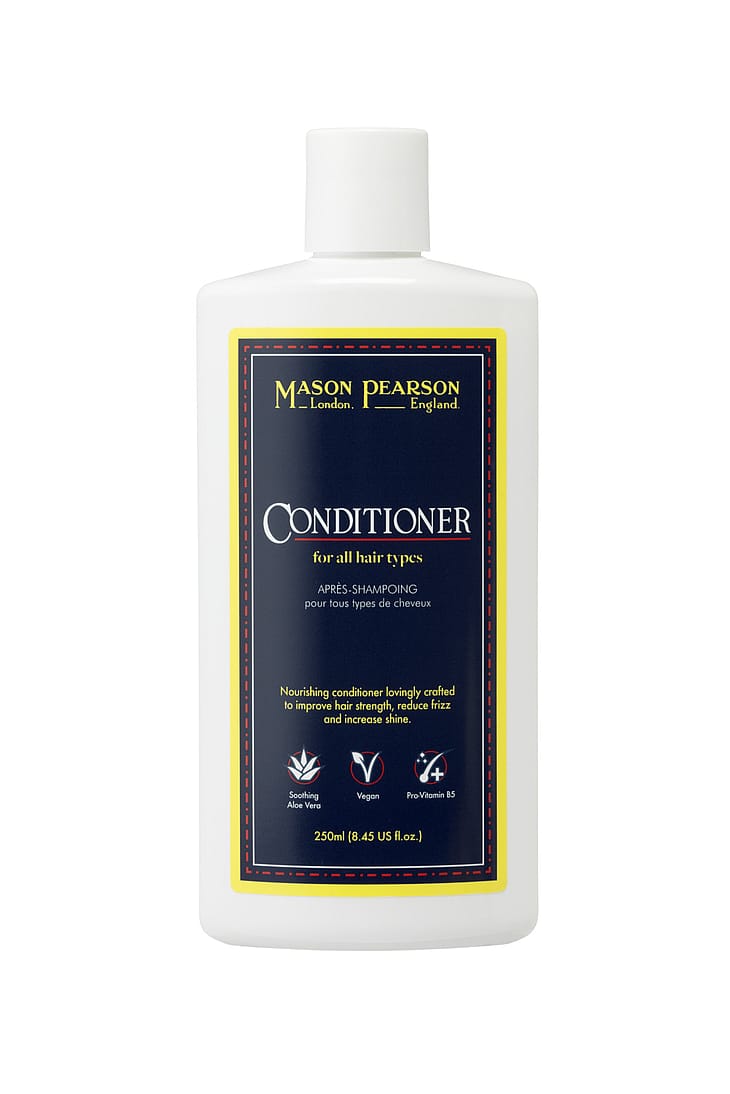 Start med at vaske håret med din Mason Pearson Shampoo. Påfør derefter en lille mængde balsam i vådt hår, og massér det ind i håret fra midten og ned til spidserne.