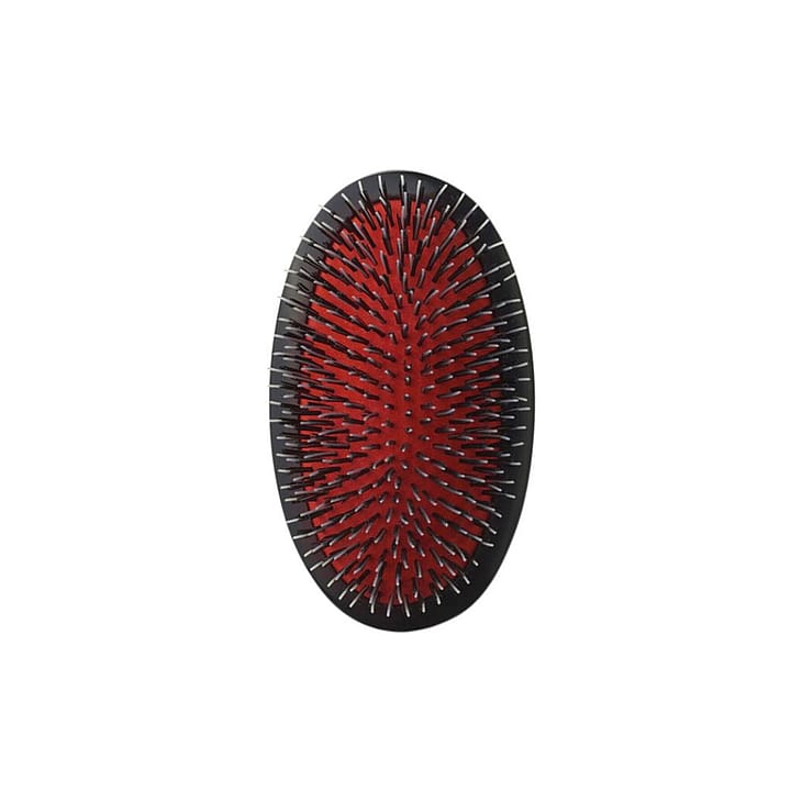 Denne luksuriøse hårbørste er håndlavet med en kombination af vildsvinehår og nylon, der både stimulerer hovedbunden og fordeler hårets naturlige olier jævnt fra rod til spids. Et uundværligt step i enhver hårplejerutine!