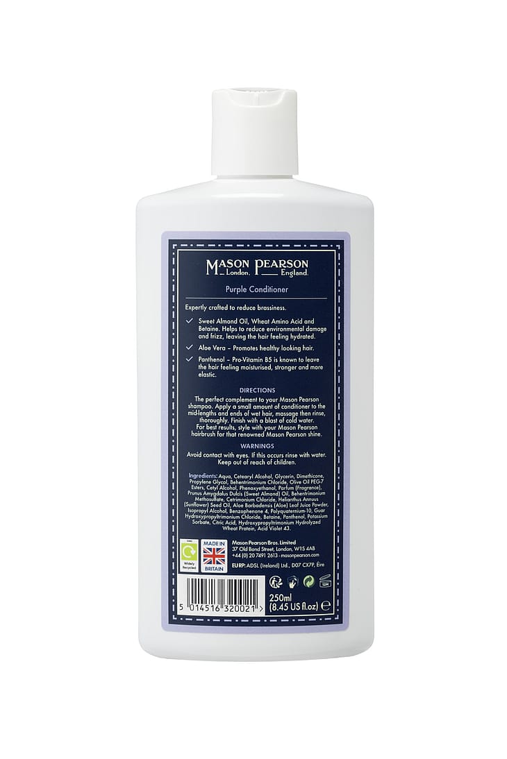 Med mere end 140 års erfaring inden for hårpleje gennem deres ikoniske, håndlavede hårbørster har Mason Pearson udviklet en vegansk purple conditioner, der kombinerer farvebevarende teknologi med dybdegående pleje. Balsammen er særligt formuleret til at reducere uønskede gule toner og fremhæve smukke, kølige nuancer i blondt, sølv- og gråt hår – samtidig med at den genopbygger fugtbalancen og forbedrer hårets elasticitet.