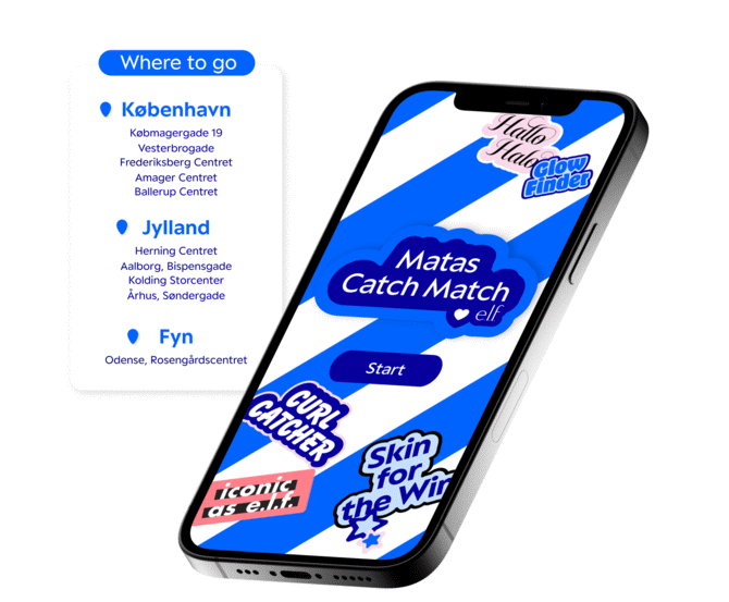 Catch Match er Matas’ nye AR-spil i samarbejde med e.l.f. Fra 9.–22. oktober kan du i 10 udvalgte Matas-butikker fange flyvende e.l.f.-produkter med din telefons kamera via Matas app'en. Du er med i lodtrækningen om 10 Holy Grail Goodie Bags (værdi over 1.000 kr. pr. stk.) + 20.000+ instant-win præmier, som indløses i de deltagende butikker. Det er gratis og ikke købsbetinget – kræver blot Club Matas medlemskab og at du spiller via Matas app'en.