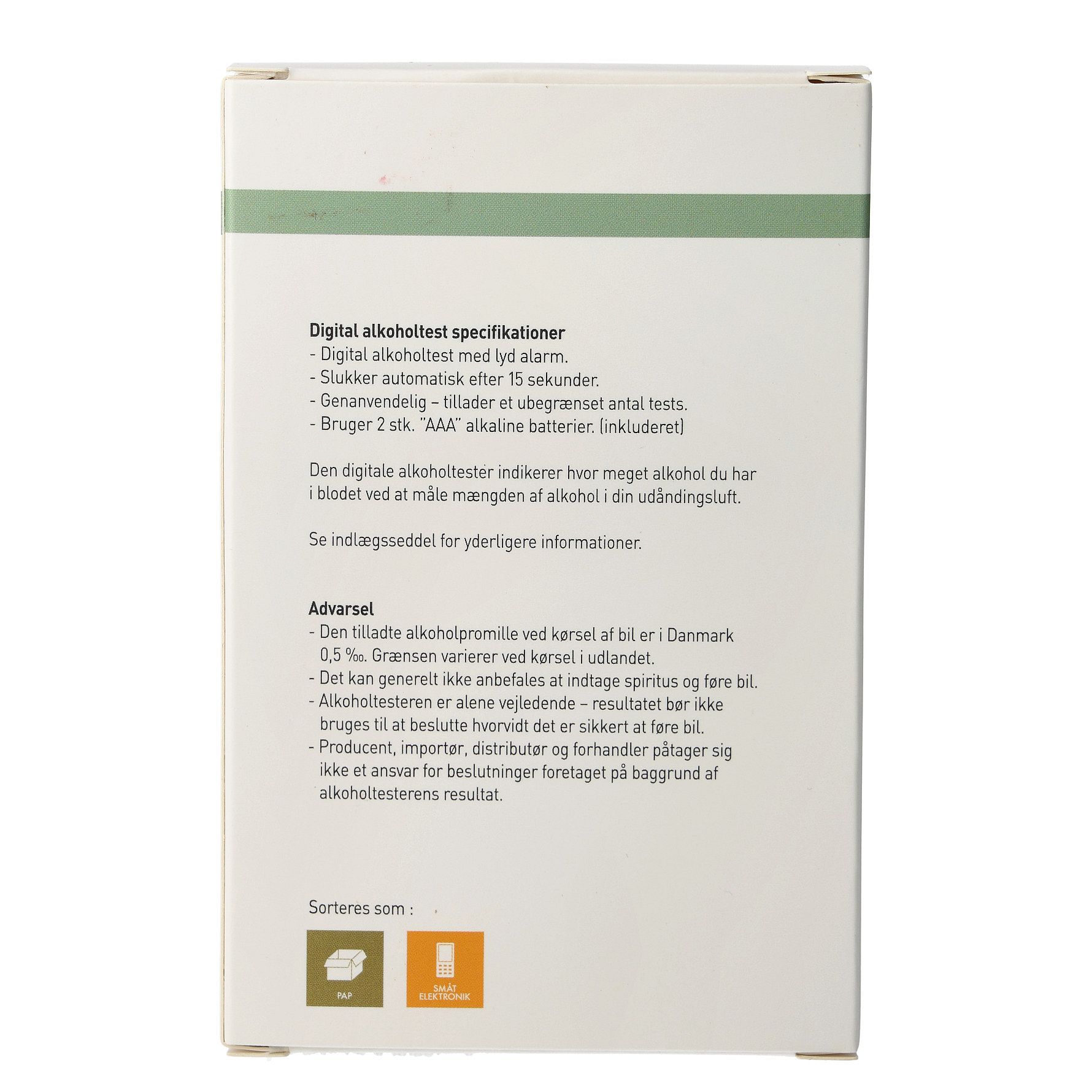 - Den digitale alkoholtest er med lydalarm