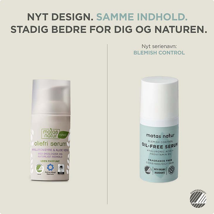 Blemish Control-serien fra Matas Natur er til dig, der ønsker en effektiv, men mild hudplejeserie til at mindske irritation, bumser, hudorme og overskydende talg.