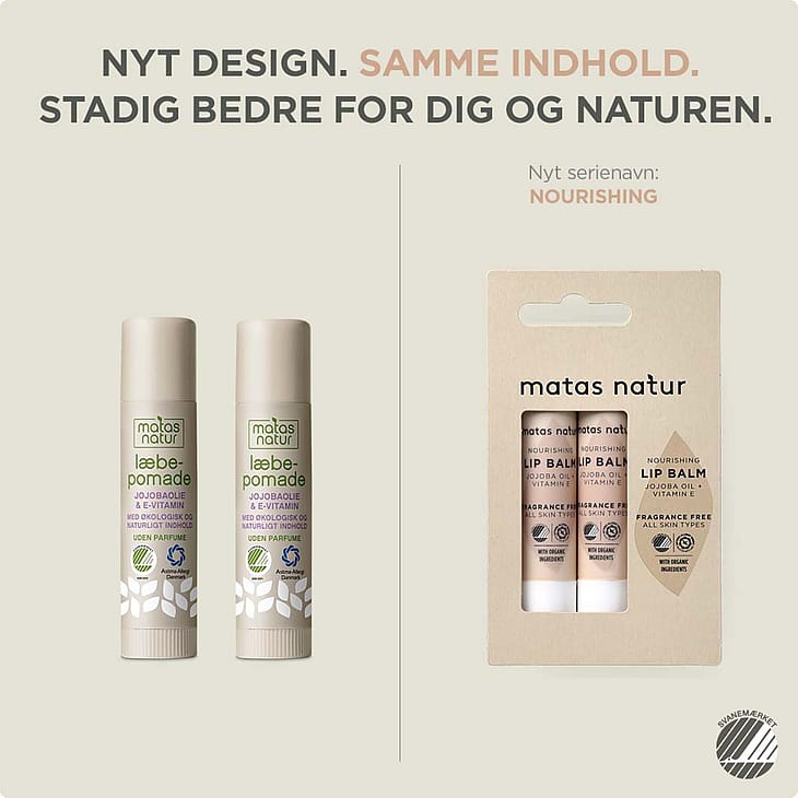 Matas Natur Nourishing Lip Balm er en parfumefri læbepomade, som virker plejende og fugtbevarende.