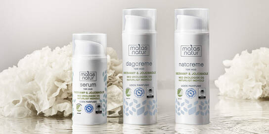 Serien har økologisk indhold og naturlige ingredienser og er udviklet med omtanke for miljøet og din sundhed. Alle produkter er parfumefri og bærer både Svanemærket og Astma Allergi Nordics blå krans.