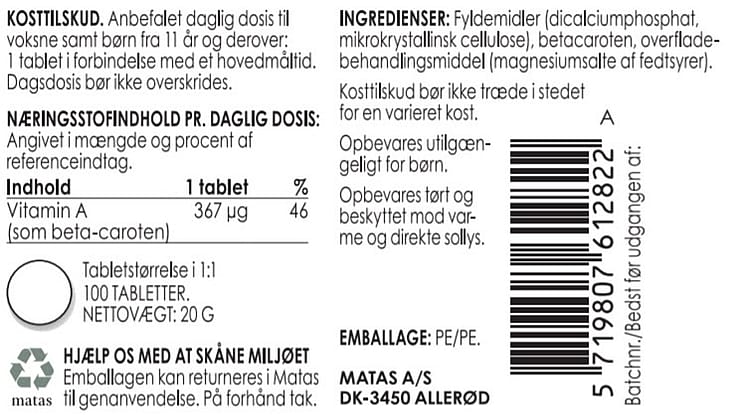 | Se alt | Matas Striber Betacaroten |
