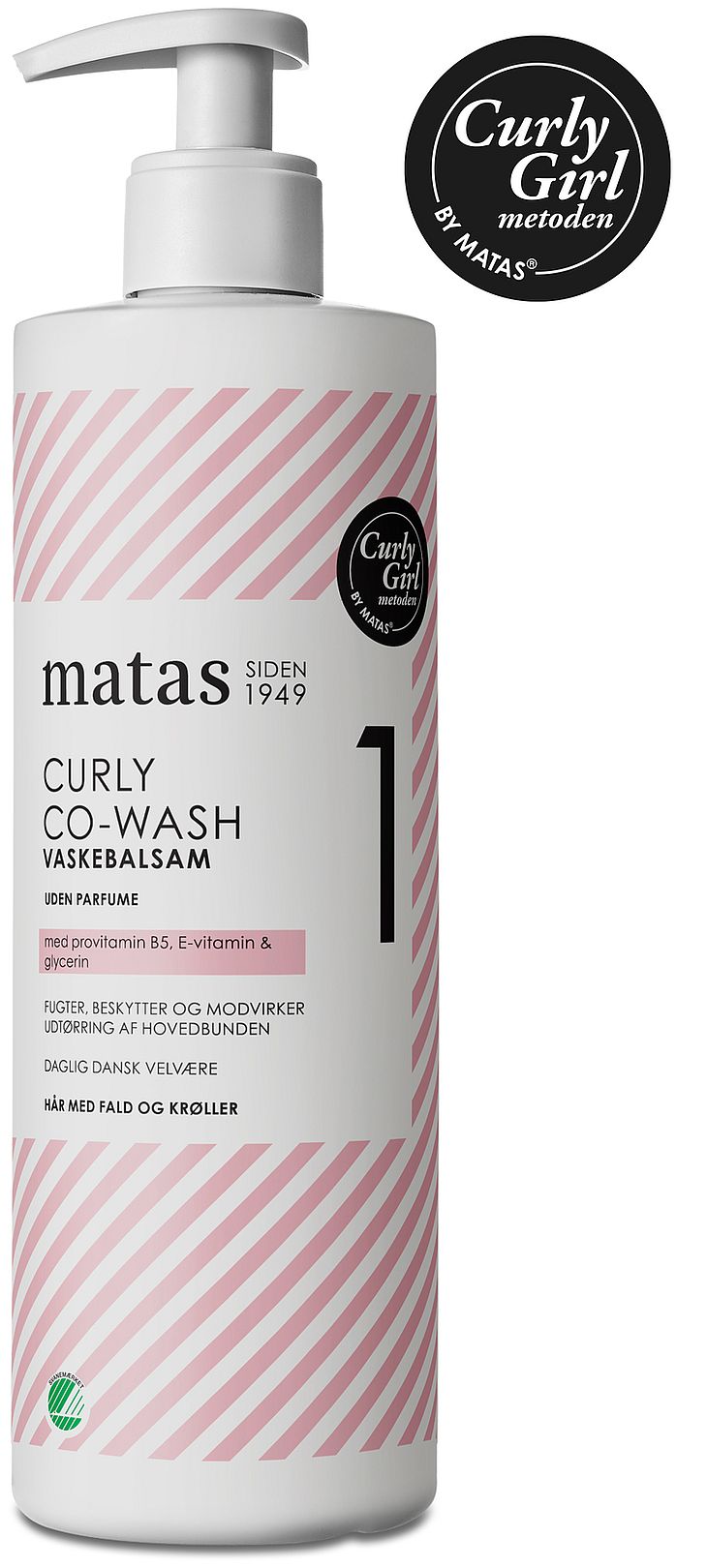 Alle Matas Curly produkter er godkendt til Curly Girl metoden. Co-Wash er ideelt til et hår der mangler fugt, fordi den er beriget med fugtgivende ingredienser og ingen proteiner.