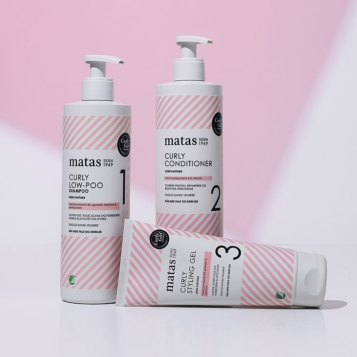 Alle Matas Curly produkter fra vask til styling er udviklet og godkendt til Curly Girl metoden. Produkterne hjælper med at definere krøller og fald, der er i håret. Ved opstart af metoden anbefales at bruge en dybderensende shampoo til at nulstille håret inden man går i gang. Derefter step 1: vask, step 2: pleje og step 3: styling.