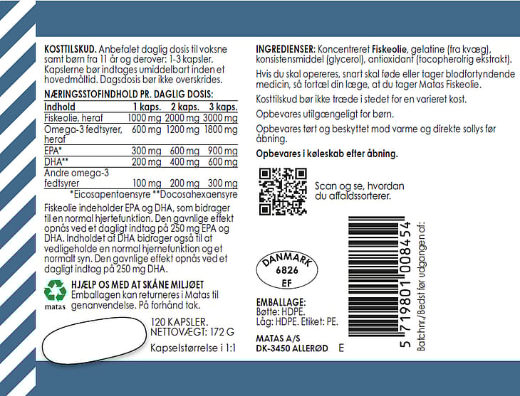 | Se alt | Matas Striber Fiskeolie & Omega 3 |