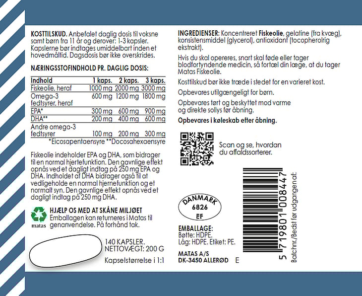| Se alt | Matas Striber Fiskeolie & Omega 3 |
