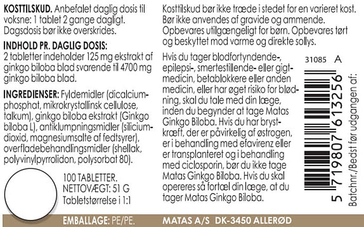 | Se alt | Matas Striber Ginkgo Biloba |