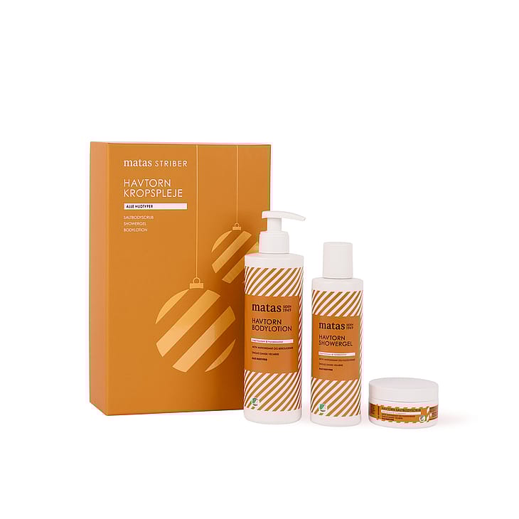 Matas Striber Havtorn Kropspleje Gaveæske er den perfekte julegaveidé, der spreder glæde og velvære i den kolde tid. Forkæl en du holder af – eller dig selv – med denne luksuriøse gaveæske fyldt med skøn kropspleje med en dejlig duft af havtorn.