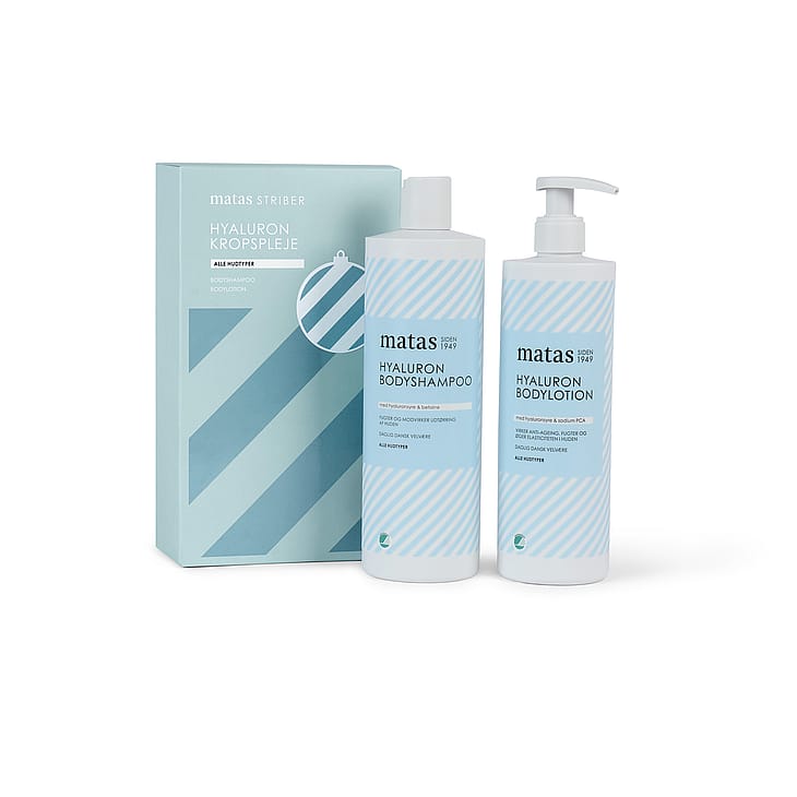 Matas Striber Hyaluron Kropspleje Gaveæske er den perfekte forkælelse til dig selv eller en du holder af i julen. Denne skønne gaveæske indeholder alt, hvad du behøver for at pleje din krop og give den masser af fugt i de kolde vintermåneder. Serien indeholder hyaluronsyre, der binder fugt i huden, så den bliver glattere og føles blød og smidig. Den dejlige duft af liljekonval og jasmin fuldender oplevelsen.
