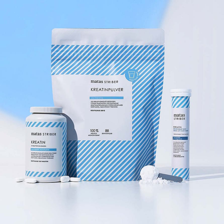 Matas kreatin brusetabletter er for voksne sportsudøvere, der udfører korte, dynamiske discipliner f.eks. intensiv styrketræning. Kreatin øger den fysiske præstation ved gentagne kraftanstrengelser i forbindelse med kortvarig, højintensiv træning. Den gavnlige effekt opnås ved et dagligt indtag på 3 g kreatin.