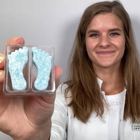 Efter: Fjern forsigtigt den blødgjorte hårde hud med en pimpsten eller fodfil. Massér efterfølgende fødderne ind i en rig fodcreme, som f.eks. Matas Fodcreme eller -salve, for optimal fugt og pleje.