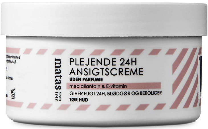 Tør og sart hud har brug for skånsom og fugtgivende pleje - især i vinterhalvåret. Matas Plejende 24H Ansigtscreme er en dagcreme, du kan bruge både morgen og aften, som tilfører din hud masser af fugt samtidig med, at den beroliger huden.