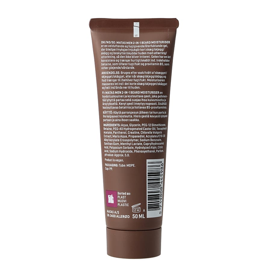 Matas Striber Men 2-In-1 Beard Moisturiser er en velduftende og fugtgivende gel, der blødgør kort skæg og beskytter huden mod udtørring, så den ikke bliver irriteret. Gelen har en let konsistens og trænger hurtigt ind.