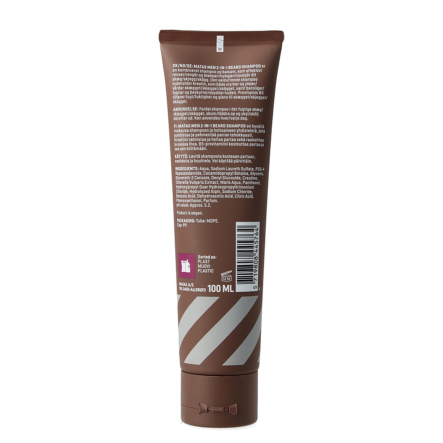 Matas Striber Men 2-In-1 Beard Shampoo er en kombineret shampoo og balsam, der giver dit skæg den ultimative vask og pleje. Den renser i dybden og efterlader skægget velduftende og med fornyet glans.