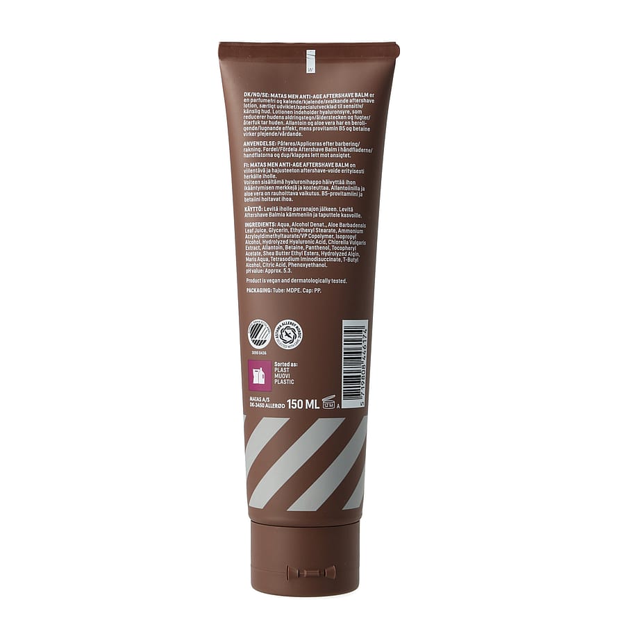 Matas Striber Men Anti-Age Aftershave Balm er en parfumefri og kølende aftershave lotion, særligt udviklet til sensitiv hud.
