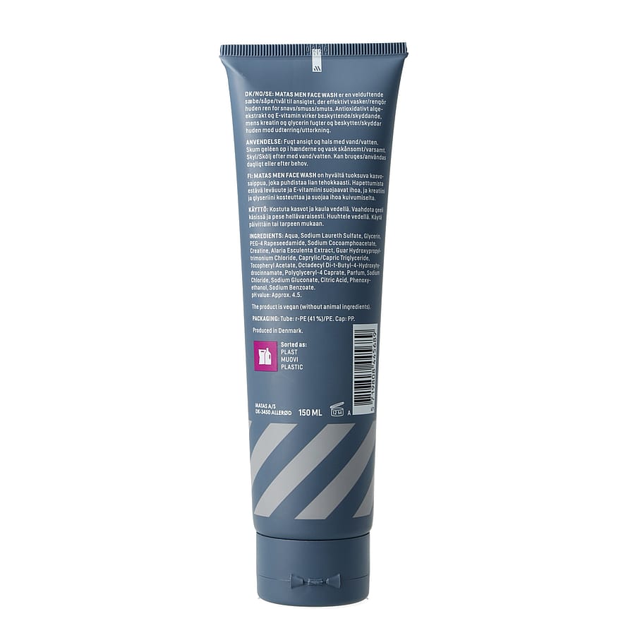 MATAS STRIBER MEN FACE WASH er en velduftende sæbe til ansigtet, der effektivt vasker huden ren for snavs.